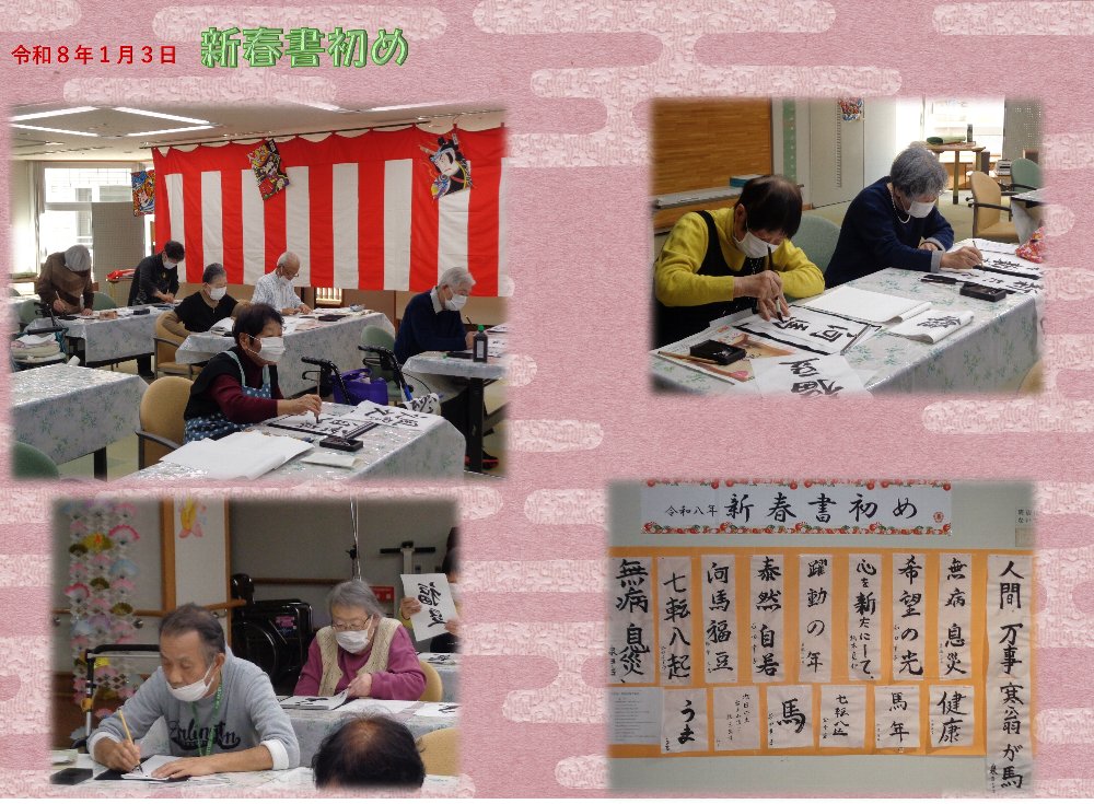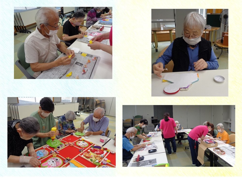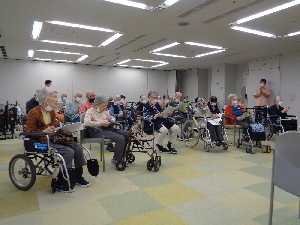 ケアハウスのコロナ渦の様々な活動(敬老会・ラジオ体操・書道・スイカ割り等)